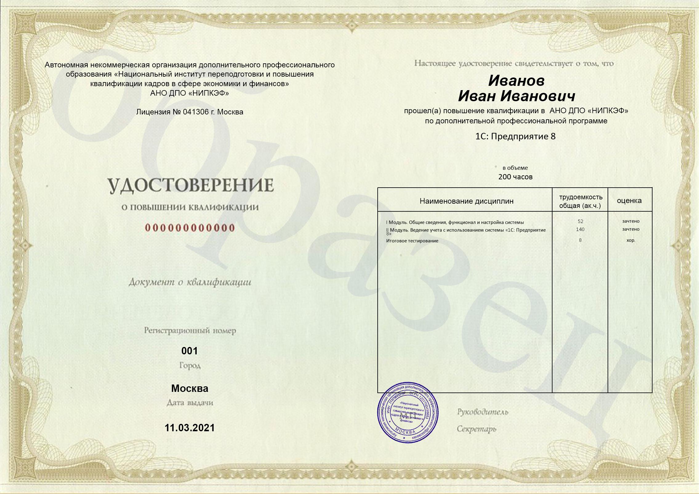 Цель курса – в полном объеме дать знания по работе в программе «1С: Предприятие 8».